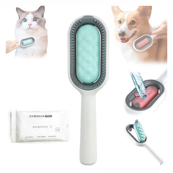 طراحی هوشمندانه ای که موجب میشه با وجود دستمال مرطوبی که در شانه قرار داده میشه همزمان هم پت خود را شانه کنید و هم تمیزش کنید.