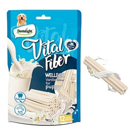 تشویقی توله سگ دنتالایت مدل دنتال مسواکی طعم شیر و وانیل - وزن (80گرم)