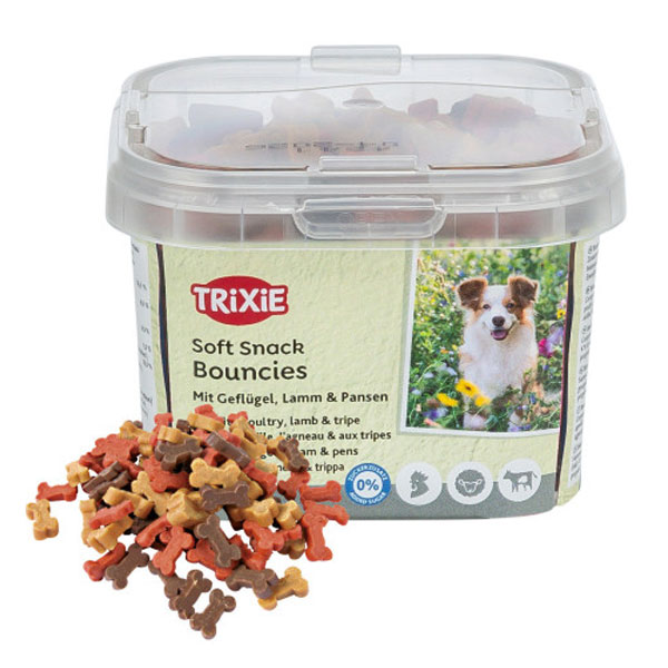 تشویقی سطلی سگ با طعم مرغ و گوشت بره و سیرابی تریکسی - وزن (140 گرم)