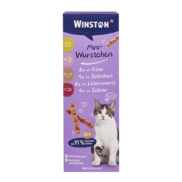 تشویقی سوسیسی گربه وینستون طعم پنیر،ژامبون،سوسیس،سالامی - تعداد (20 ساشه 2 گرمی)
