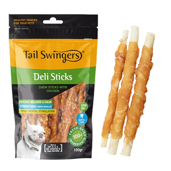 تشویقی سگ تیل سوینگرز مدل مدادی دورپیچ با طعم مرغ - وزن (100 گرم)