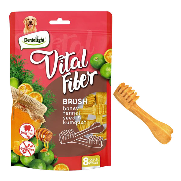 تشویقی سگ دنتالایت مدل دنتال مسواکی طعم عسل و کامکوات - وزن (80 گرم)