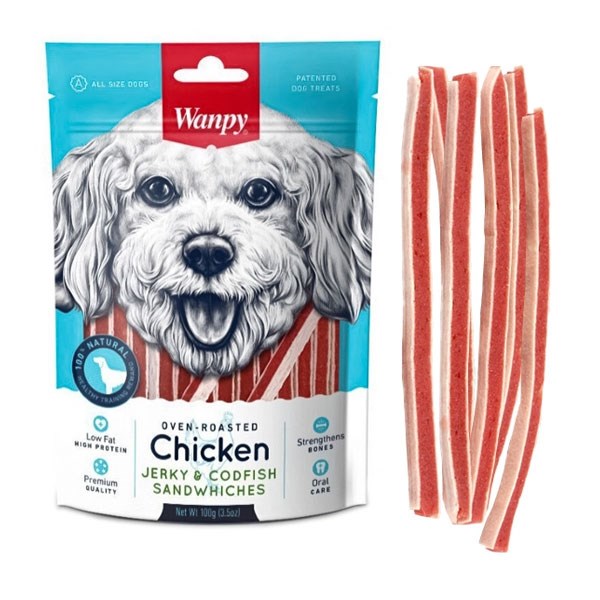 تشویقی سگ ونپی مدل Chicken Jerky Codfish Sandwhiches - وزن (100 گرم)