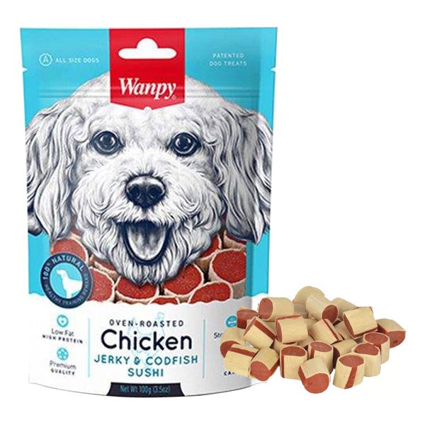 تشویقی سگ ونپی مدل Chicken Jerky Codfish Sushi - وزن (100 گرم)