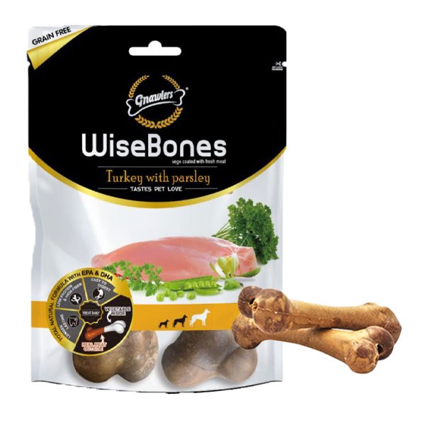 تشویقی سگ گناولز مدل استخوان ژلاتینی طعم بوقلمون و جعفری - وزن (200 گرم)