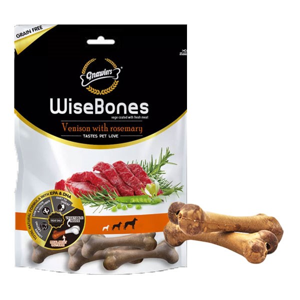 تشویقی سگ گناولز مدل استخوان ژلاتینی گوشت گوزن و رزماری - وزن (200 گرم (۲ عدد استخوان ۱۴ سانتی متر))