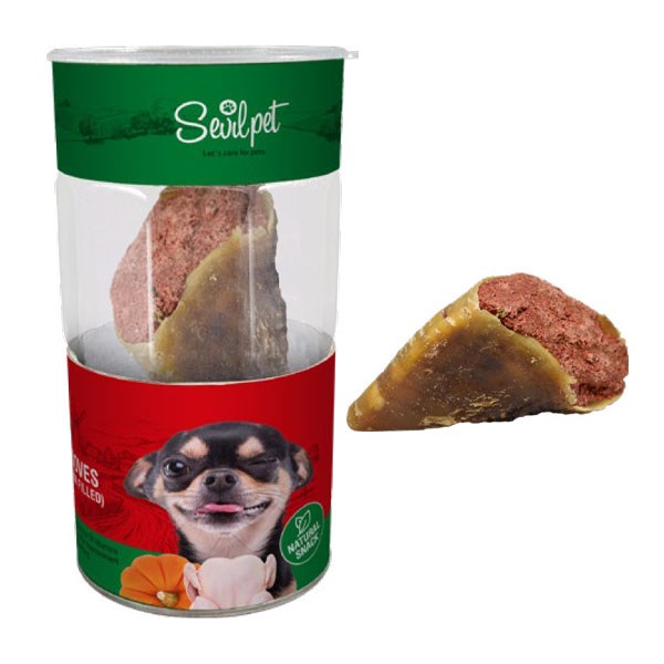 تشویقی طبیعی سم گاو پر شده با مرغ و کدو حلوایی سویل پت - وزن (150 گرم)