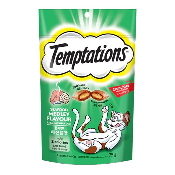 تشویقی کرانچی مغزدار گربه تمپتیشین طعم میکس دریایی (ماهی و صدف) - وزن (75 گرم)