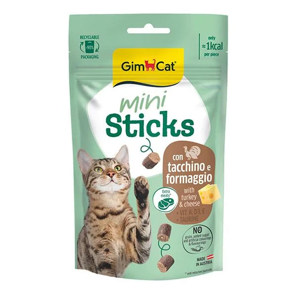 تشویقی گربه جیم کت مدل مینی استیک طعم بوقلمون و پنیر - وزن (50 گرم)