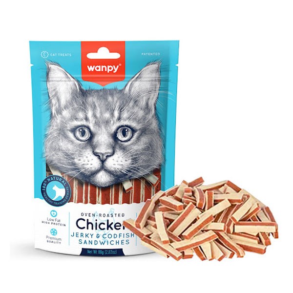 تشویقی گربه ونپی مدل Chicken Jerky Codfish Sandwhiches - وزن (80 گرم)