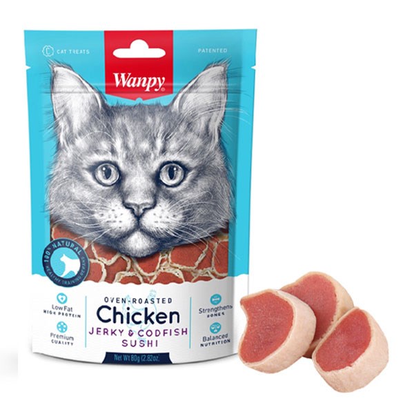 تشویقی گربه ونپی مدل Chicken Jerky Codfish Sushi - وزن (80 گرم)