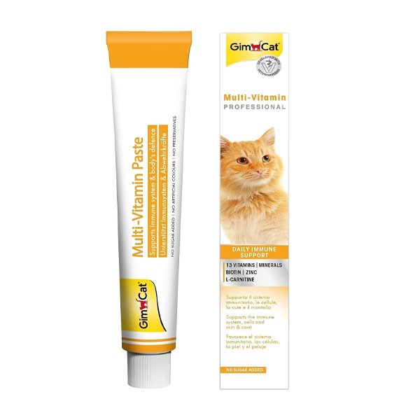 خمیر مولتی ویتامین گربه جیم کت مدل Multi Vitamin Professional محصولی فوق العاده باکیفیت برای گربه شماست که به سلامت دوچندان او کمک شایانی می نماید. این مولتی ویتامین شرکت جیم کت با استفاده از بهترین متریال ها ساخته شده است و برای تمامی نژادهای گربه در تمامی سنین مناسب بوده و قابل استفاده است. استفاده از این محصول می تواند موجب تقویت سیستم ایمنی بدن شده و پت را در مقابل ابتلا به بسیاری از بیماری ها بیمه نماید. همچنین گفتنی است که این محصول تاثیر بسزایی در تقویت اعصاب داشته و در نهایت به سلامت پت دلبند شما کمک فراوانی می نماید. فرمولاسیون این محصول فاقد هرگونه مواد و افزودنی های شیمیایی و غیر مجاز، رنگ دهنده ها و طعم دهنده های مقنوعی، نمک، شکر و گلوتن است که این امر اسباب سلامت هر چه بیشتر این محصول را برای گربه دوست داشتنی شما فراهم می آورد.