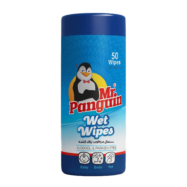 دستمال مرطوب استوانه ای مخصوص سگ و گربه مستر پنگوئن - تعداد (50 برگ)