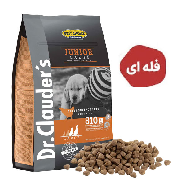 غذای خشک سگ های جوان نژاد بزرگ دکتر کلادرز طعم مرغ و برنج - وزن (1 کیلوگرم فله)