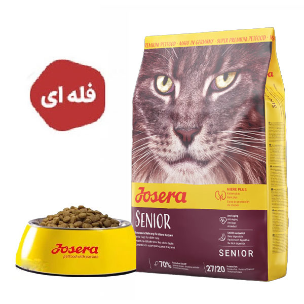 غذای سنیور برای گربه های مسن توسط کمپانی جوسرا تولید شده و به صورت فله ای عرضه می گردد. این محصول بروز نشانه های کهولت سن را به تاخیر می اندازد.
