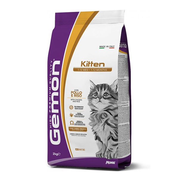 غذا خشک بچه گربه مونژه Gemon طعم مرغ و برنج - وزن (2 کیلوگرم)