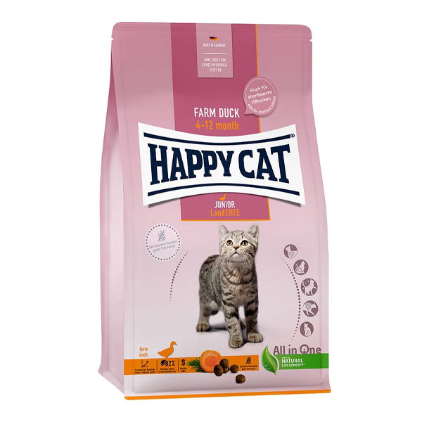 غذا خشک بچه گربه هپی کت مدل جونیور طعم اردک - وزن (300 گرم)
