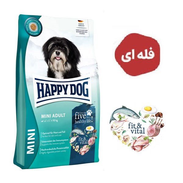 غذای خشک سگ مینی ادالت 10 کیلویی هپی داگ Mini Adult حاوی 26% پروتئین با کیفیت بالا و 14% چربی و اسیدهای چرب امگا3 و امگا6 می باشد که برای زندگی سالم ضروری است و از منابع حیوانی و گیاهی با کیفیت تهیه شده است. دستور غذائی مخصوص با غذای منحصر به فرد Natural Life Concept که از اجزاء طبیعی و مکمل با صدف طبیعی نیوزلند تشکیل شده است و مناسب سگهای بالغ با حداکثر وزن 10 کیلوگرم می باشد. انرژی محتوای مینی ادالت هپی داگ Mini Adult با روند طبیعی برای 2 تا 3 ساعت ورزش در روز تطبیق داده شده است. اگر مقدار توصیه شده داده شود، از تغذیه بیش از حد و مسائل ناشی شده جلوگیری خواهد کرد.