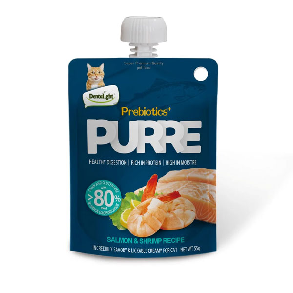 پودینگ گربه دنتلایت طعم ماهی سالمون و میگو حاوی پریبیوتیک - وزن (55 گرم)