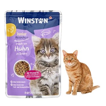 پوچ بچه گربه وینستون طعم مرغ در سس - وزن (100گرم)