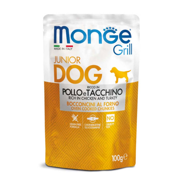 پوچ توله سگ مونژه با طعم مرغ و بوقلمون - وزن (100 گرم)