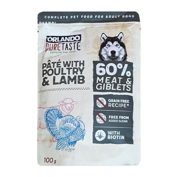 پوچ سگ اورلاندو با طعم بره و بوقلمون - وزن (100 گرم)