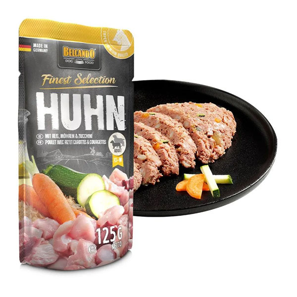 پوچ سگ بلکاندو طعم مرغ با برنج و هویج و کدو سبز - وزن (125 گرم)