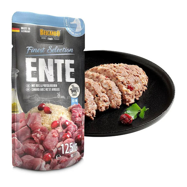 پوچ سگ بلکاندو طعم گوشت اردک با برنج و لینگون بری - وزن (125 گرم)