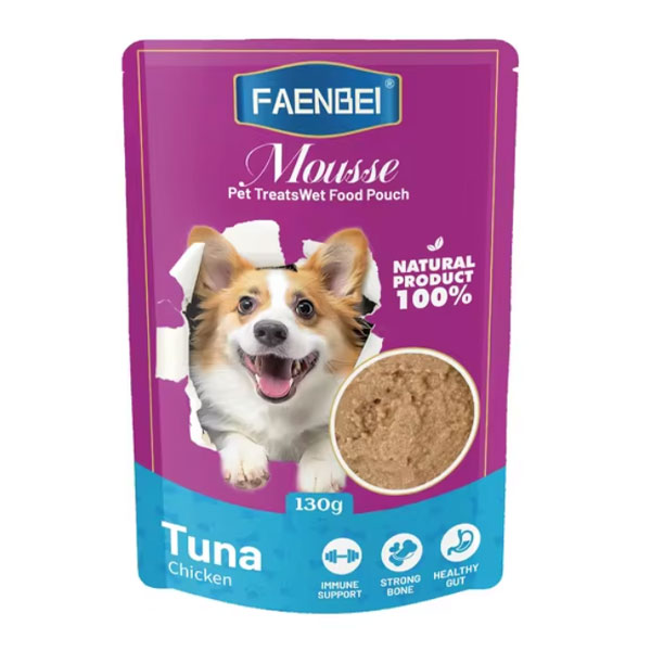 پوچ سگ فنبی طعم ماهی تن و مرغ در موس - وزن (130 گرم)