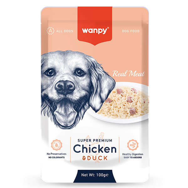 پوچ ونپی با طعم مرغ و سبزیجات (Wanpy Dog Chicken & Duck pouch)برای همه نژادها قابل استفاده بوده و بسیار خوش خوراک است. این محصول به دلیل آن که حاوی سبزیجات است، هضم بسیار راحتی دارد و سبب بهبود کارایی دستگاه گوارش خواهد شد. میزان رطوبت در این خوراک بسیار بالا است. به همین دلیل شادابی و سلامت پوست و مو افزایش پیدا کرده و همچنین کارایی کلیه ها بهبود پیدا می کند. با این حال در دسترس بودن آب تازه برای حیوان در تمام طول روز الزامی است.