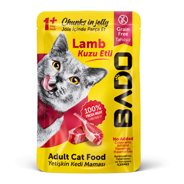 پوچ گربه بادو طعم گوشت بره در ژله مدل چانکی - وزن (85 گرم)