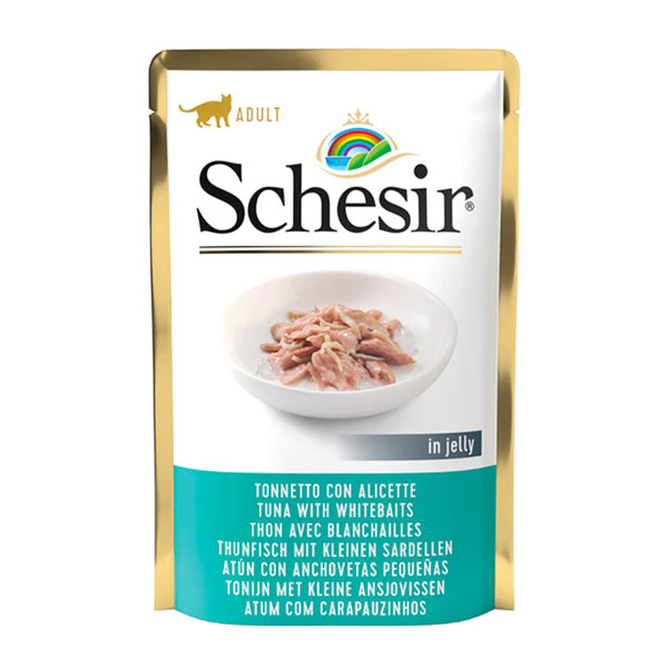 پوچ گربه با طعم ماهی تن و ماهی سفید در ژله شسیر - وزن (85 گرم)