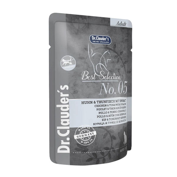 پوچ گربه دکتر کلادرز طعم مرغ و ماهی تن و اسفناج - وزن (85 گرم)