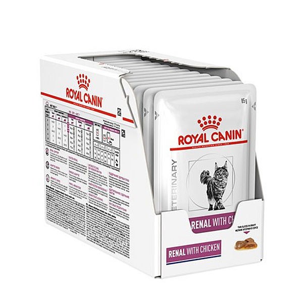 این غذا با استفاده از تکه های مرغ در سس مخصوص تولید شده که طعمی عالی ایجاد می کند. استفاده از آن طبق دستور دامپزشک باید انجام شود و برای گربه های مبتلا به مشکلات کلیه به ویژه نارسایی مزمن کلیه مناسب است. برای محافظت از کلیه ها، از پروتئین های با کیفیت و با قابلیت هضم بالا در غذای پوچ گربه رنال رویال کنین استفاده شده است. همچنین میزان فسفر در آن کاهش یافته است.
