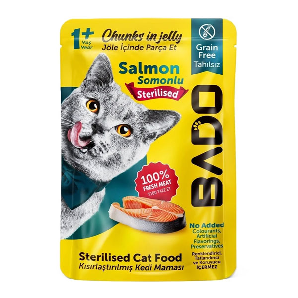 پوچ گربه عقیم شده بادو طعم ماهی سالمون در ژله مدل چانکی - وزن (85 گرم)