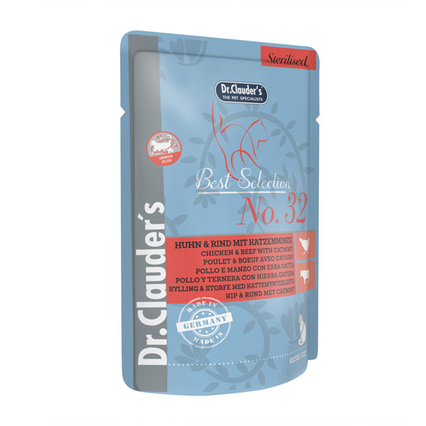 پوچ گربه عقیم شده دکتر کلادرز طعم مرغ و گوشت و کت نیپ - وزن (85 گرم)
