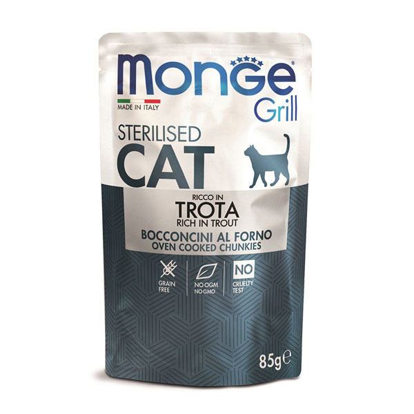 پوچ گربه عقیم شده مونژه با طعم ماهی قزل آلا - وزن (85 گرم)