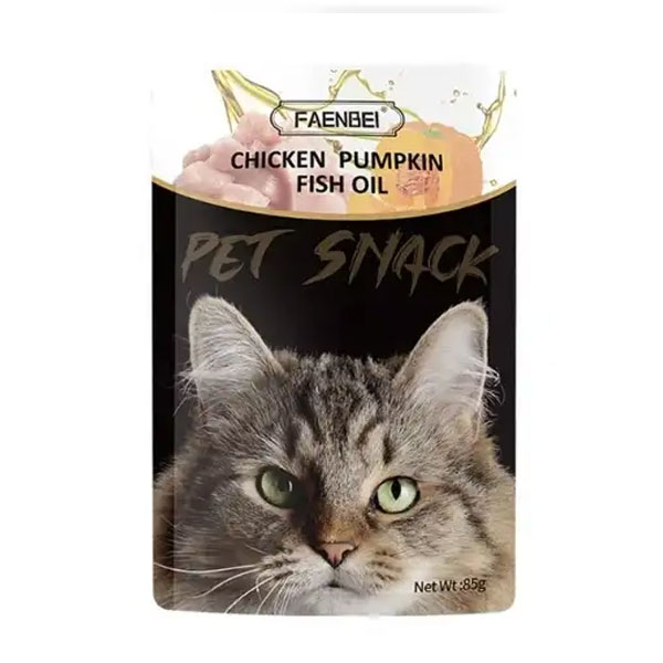 پوچ گربه فنبی مدل میکس با طعم مرغ و کدو حلوایی و روغن ماهی - وزن (85 گرم)