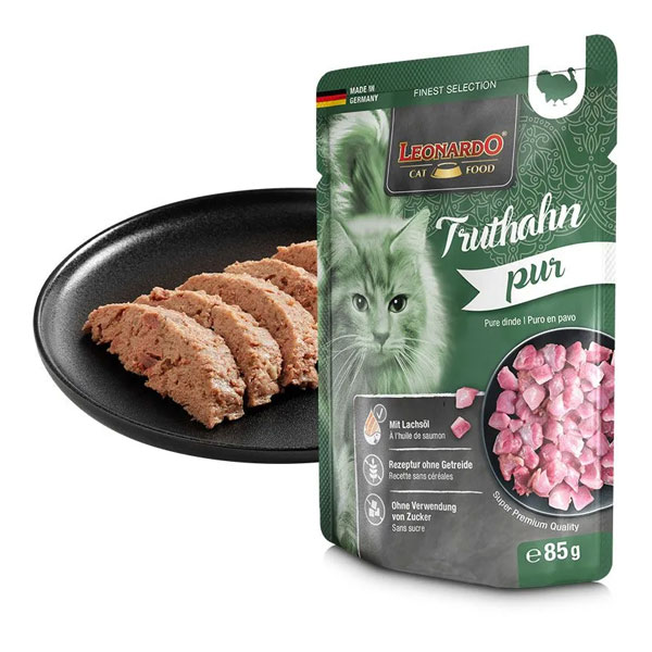 پوچ گربه لئوناردو با طعم بوقلمون - وزن (85 گرم)