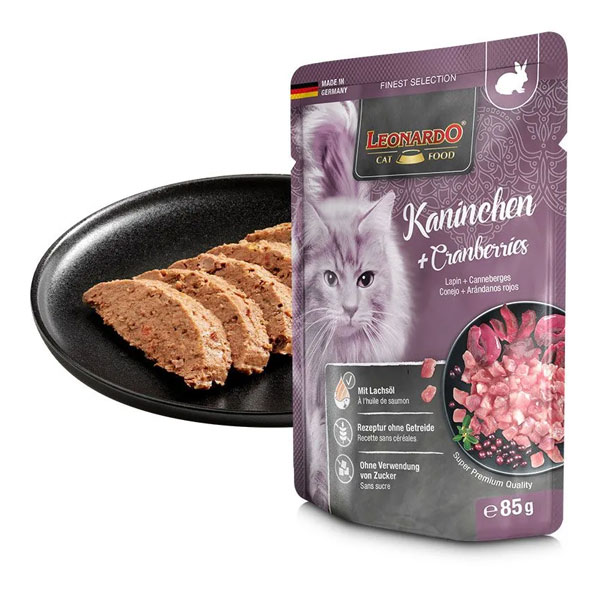 پوچ گربه لئوناردو با طعم خرگوش و کرنبری - وزن (85 گرم)