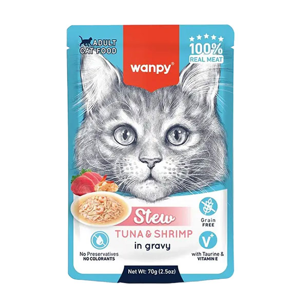 پوچ گربه ونپی طعم ماهی تن و میگو در سس - وزن (70 گرم)