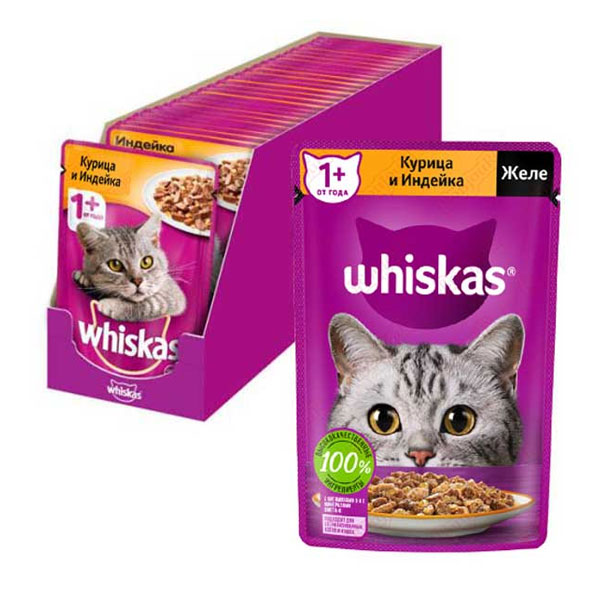 غذای پوچ گربه ویسکاس Whiskas خوراکی ژله ای، کامل و خوشمزه است که با طعم بوقلمون تهیه شده است. این محصول فاقد نگهدارنده و طعم دهنده است.