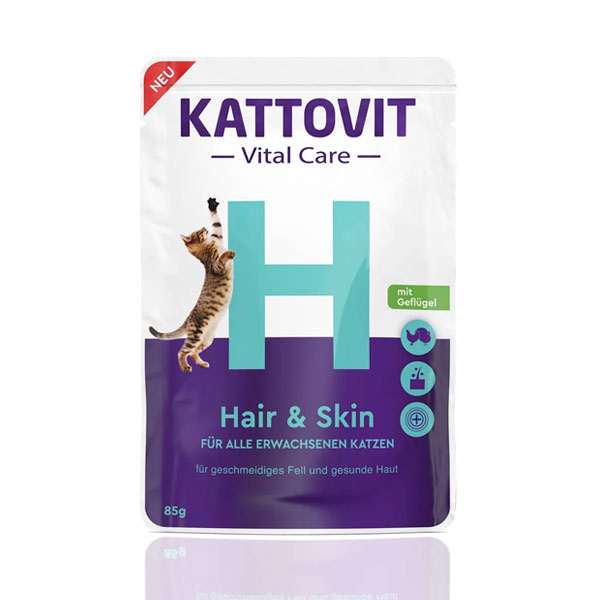 پوچ گربه کاتوویت مخصوص پوست و مو با طعم مرغ - وزن (85 گرم)