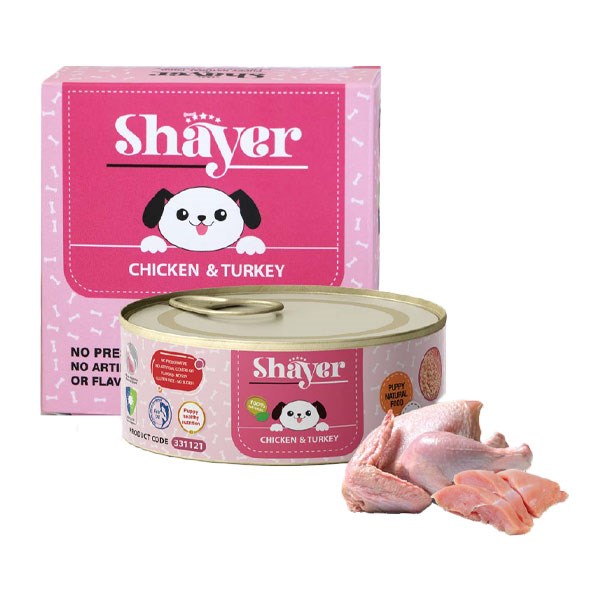 کنسرو نچرال توله سگ شایر با طعم مرغ و بوقلمون - شایر (120گرم)