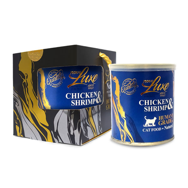 کنسرو نچرال گربه با طعم مرغ و شاه میگو نوول - وزن (300 گرم)