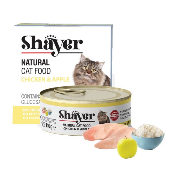 کنسرو نچرال گربه شایر طعم مرغ و سیب در ژله گیاهی - وزن (110 گرم)