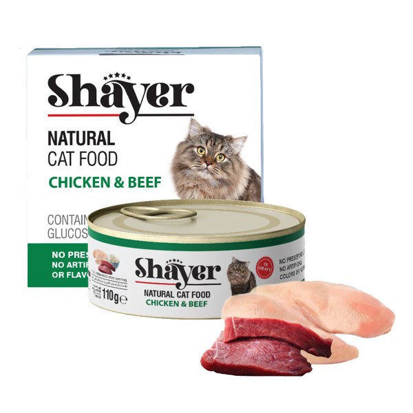 کنسرو گربه شایر نچرال طعم مرغ و گوشت با در نظر گرفتن پروتئین، ویتامین، کربوهیدرات و چربیهای مورد نیاز روزانه بدن گربه تهیه و تولید شده است. عموما در گوشت و مرغ مواد معدنی و ویتامینهای لازم وجود دارد از این رو برای متابولیسم و تقویت سیستم ایمنی ضروری میباشند و همین طور باعث بهبود عملکرد دستگاه گوارش و کمک به خواب راحت میشود.