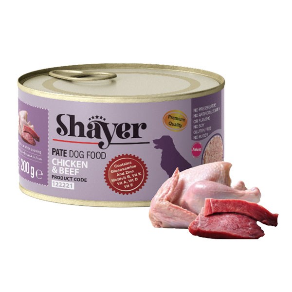 کنسرو پته سگ شایر با طعم مرغ و گوشت - وزن (200 گرم)