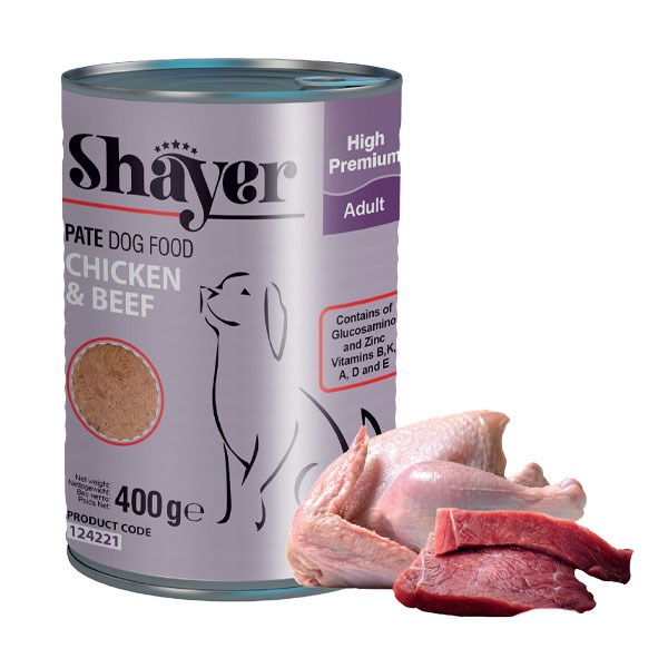 کنسرو پته سگ شایر طعم مرغ و گوشت - بسته بندی (400 گرم)