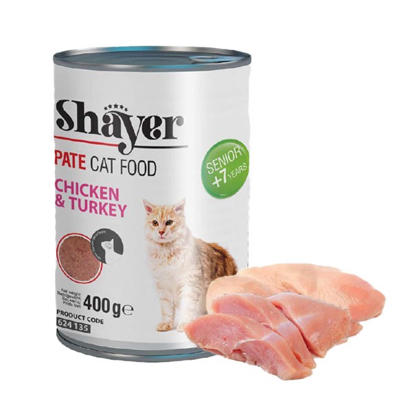 کنسرو پته گربه مسن شایر با طعم مرغ و بوقلمون - بسته بندی (400 گرم)